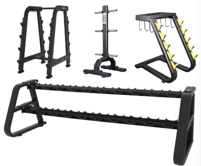 ชั้นวางดัมเบลสองชั้นสำหรับออกกำลังกายเชิงพาณิชย์ ชั้นวางดัมเบลสามชั้นสิบคู่ ชั้นวางดัมเบลแบบโอลิมปิก ชั้นวางดัมเบล